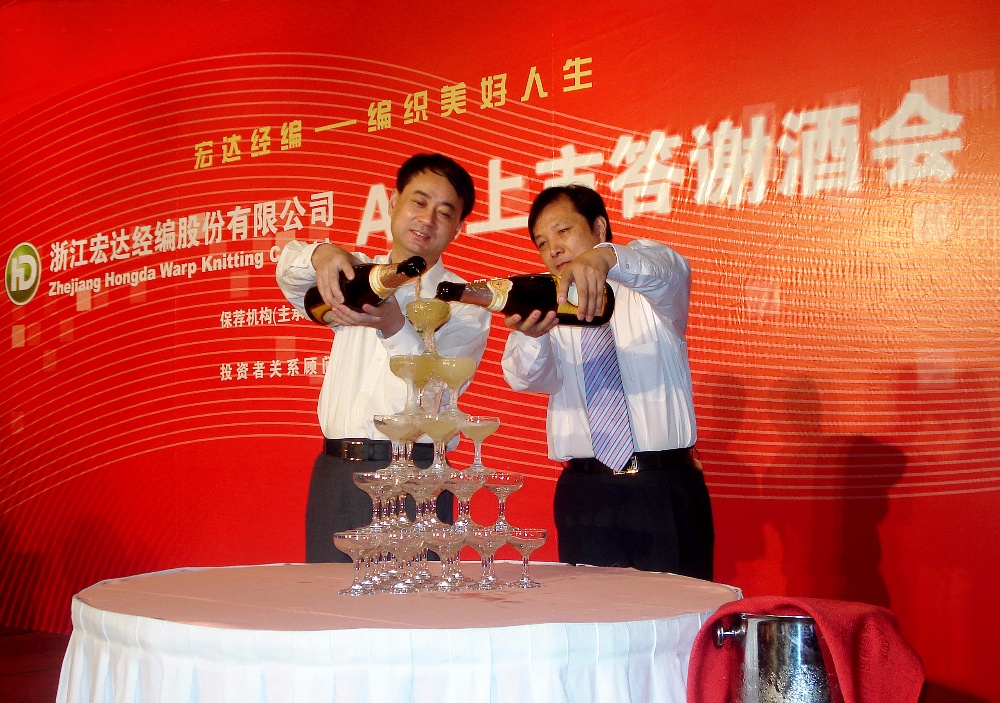 The deputy director of the Standing Committee of the Jiaxing Municipal People's Congress (Shen Linnong, secretary of the CPC Haining Municipal Committee) at the "Hongda Warp" new stock listing ceremony.