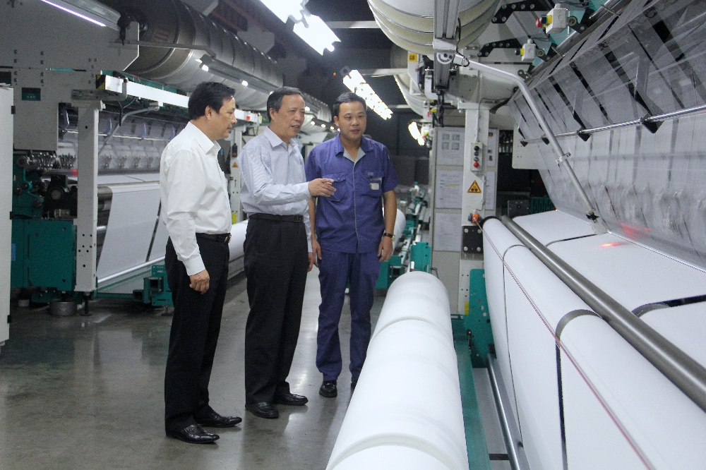 The deputy director of the Standing Committee of the Jiaxing Municipal People's Congress (Shen Linnong, secretary of the CPC Haining Municipal Committee) at the "Hongda Warp" new stock listing ceremony.