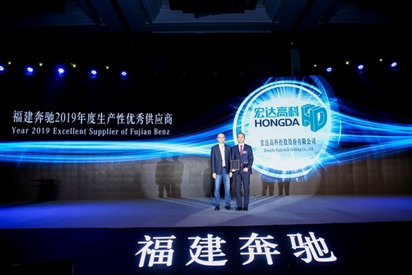 2020年9月29日,2020福建奔馳全球供應(yīng)商大會在云南昆明舉行。面對汽車行業(yè)的變革及外部嚴(yán)峻環(huán)境的多重挑戰(zhàn),會議以“馭變,質(zhì)造柔韌星級供應(yīng)鏈”為主題。來自全球的兩百多家供應(yīng)商出席了本次會議。會上頒發(fā)了技術(shù)開發(fā)配合獎(jiǎng),非生產(chǎn)性優(yōu)秀供應(yīng)商,準(zhǔn)時(shí)供貨獎(jiǎng)及生產(chǎn)性優(yōu)秀供應(yīng)商等榮譽(yù)。宏達(dá)高科榮獲七家2019年度生產(chǎn)性優(yōu)秀供應(yīng)商之一。福建奔馳采購副總裁林雄先生為宏達(dá)高科代表頒獎(jiǎng)。