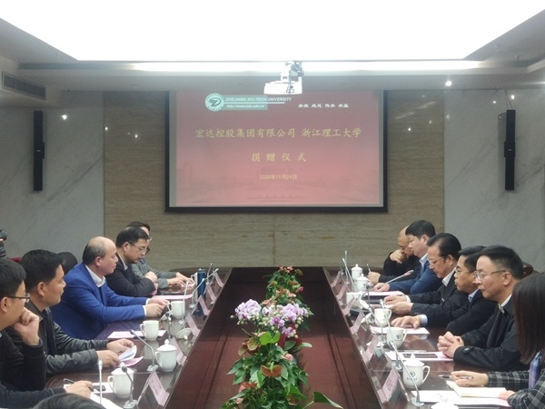 11月24日下午4點,捐贈儀式在浙江理工大學行政樓308會議室舉行。浙江省教育廳黨委副書記干武東、海寧市人民政府副市長楊文華、海寧市許村鎮人民政府黨委書記杜瑩池、宏達控股集團、宏達高科董事長沈國甫、宏達控股集團總經理、高科副董事長沈珺等嘉賓,浙江理工大學校長陳文興、教育發展基金會理事長陳建勇以及相關職能部門負責人出席捐贈儀式。浙江理工大學校黨委副書記周文龍主持儀式。