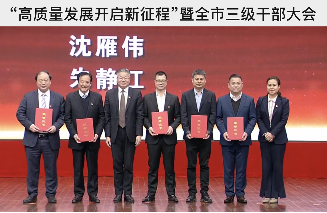 2021年2月19日上午在海寧市“高質量發展開啟新征程”暨全市三級干部大會上,公司董事長沈國甫同志榮獲”突出貢獻民營企業家“,市委書記曹國良為沈董事長頒獎。