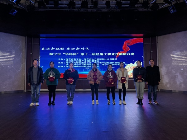 2021年11月25日,海寧市“華緯杯”第十一屆經編工職業技能擂臺賽在海寧經編園區舉行。此次賽事由海寧市人力資源和社會保障局、海寧市總工會、浙江海寧經編產業園區管委會主辦,海寧市馬橋街道總工會、浙江省中紡經編科技研究院、共青團海寧市馬橋街道委員會、海寧市馬橋街道關心下一代委員會承辦,海寧經編園華緯紡織有限公司協辦。比賽內容包括理論與實操兩個部分。共設有綜合獎、青年工匠獎和優秀師徒獎三個獎項。參賽企業14家,參賽選手34名。