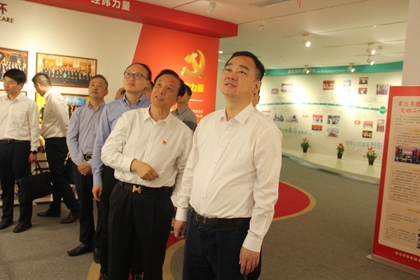 顏海榮一行在宏達(dá)黨委書記、董事長沈國甫的陪同下,實(shí)地參觀了公司黨建展廳,詳細(xì)了解了宏達(dá)黨建品牌“經(jīng)緯力量”、公司發(fā)展歷程和生產(chǎn)經(jīng)營情況。宏達(dá)黨委作為有一定辨識度和影響力的兩新組織黨建示范點(diǎn),通過搭建“經(jīng)緯力量”體系,將“經(jīng)”“緯”統(tǒng)籌應(yīng)用,縱橫成網(wǎng)、交叉成鏈,在凝心聚力中釋放力量。顏部長充分肯定了公司黨委在黨建工作中取得的成效,表示宏達(dá)是一家有情懷、有理想、重黨建、重持續(xù)發(fā)展的企業(yè),提出宏達(dá)要繼續(xù)堅(jiān)持黨建引領(lǐng),凝聚黨員組織力量,發(fā)揮干部引領(lǐng)作用,加快創(chuàng)新發(fā)展腳步,將公司特色亮點(diǎn)轉(zhuǎn)化為實(shí)實(shí)在在的企業(yè)助推力、新動能,加速推進(jìn)企業(yè)高質(zhì)量發(fā)展,為嘉興經(jīng)濟(jì)發(fā)展賦能。