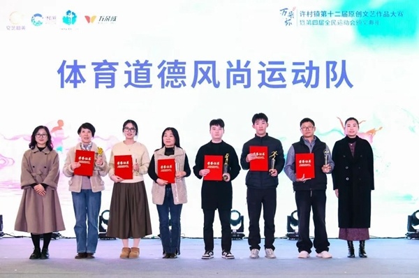 日,許村鎮第二十屆原創文藝作品大賽暨第四屆全民遠動會頒獎典禮上,宏達高科羽毛球隊榮獲許村鎮全民運動會道德風尚運動隊。