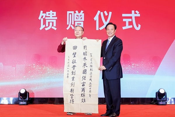 原紡織工業(yè)部副部長、國家紡織工業(yè)局局長,中國紡織工業(yè)聯(lián)合會原會長杜鈺洲;浙江省人民政府原黨組副書記、副省長,省政協(xié)原副主席,省慈善文化研究院院長陳加元還現(xiàn)場為“宏達(dá)”揮毫贈墨寶,以墨香致敬企業(yè)四十年征程。