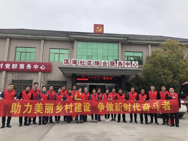 在重溫入黨誓詞后,黨員們一起學習了《黨章》,然后在潘書記的帶領下整裝出發前往結對村蕩灣村開展“助力美麗鄉村建設,爭做新時代奮斗者”主題黨日活動。