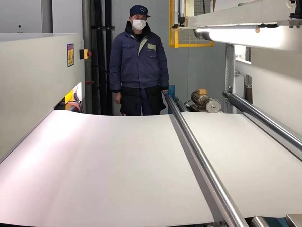 復(fù)工當(dāng)天,車間內(nèi),只見(jiàn)員工們戴著口罩在生產(chǎn)線上忙碌。由于生產(chǎn)設(shè)備高度自動(dòng)化,一名員工可以看管5至6臺(tái)設(shè)備,因此車間內(nèi)人員并不密集,生產(chǎn)也是井然有序。正在生產(chǎn)的這批汽車頂蓬面料,后天將發(fā)給客戶,以滿足客戶的需求。公司副總經(jīng)理孫云浩表示,公司目前已開(kāi)啟織造和復(fù)合兩條生產(chǎn)線,等集中供熱啟動(dòng)后,公司染整生產(chǎn)線也將恢復(fù)生產(chǎn);后續(xù)將根據(jù)產(chǎn)業(yè)鏈上游的供應(yīng)情況和下游的客戶需求情況逐步提升產(chǎn)能,爭(zhēng)取在15日全部恢復(fù)生產(chǎn)。