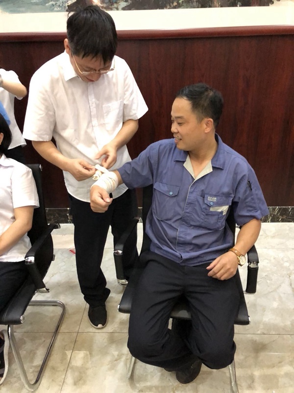 此次培訓(xùn)由海寧市紅十字會(huì)的兩名培訓(xùn)講師主持。上午,通過多媒體放映的形式,為學(xué)員們講解了紅十字以及一些常用的急救知識(shí),包括骨折的固定與搬運(yùn)、止血的基本常識(shí)、現(xiàn)場急救心肺復(fù)蘇、人工呼吸等;隨后運(yùn)用人體模型,進(jìn)行現(xiàn)場演示教學(xué);邀請(qǐng)學(xué)員進(jìn)行現(xiàn)場實(shí)操,了解突發(fā)事故的現(xiàn)場救助流程;安排了互動(dòng)環(huán)節(jié),學(xué)員們積極提問,講師們耐心回答,現(xiàn)場氣氛活躍。下午進(jìn)行了考試。經(jīng)兩名培訓(xùn)師確認(rèn),參加本次培訓(xùn)的學(xué)員考試全部合格,均可獲得“紅十字救護(hù)員證”。