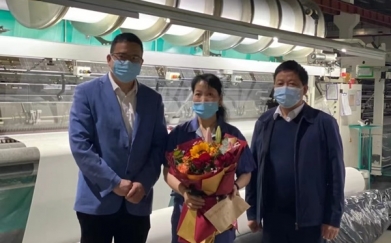 4月29日,許村鎮(zhèn)工會(huì)主席俞建強(qiáng)來(lái)到宏達(dá)高科慰問(wèn)浙江省勞模趙巧娟。