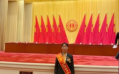 2021年4月28日上午,宏達高科管委會領(lǐng)導(dǎo)為公司織造部趙巧娟領(lǐng)獎歸來舉..
