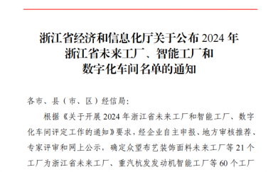 1月18日,浙江省經濟和信息化廳對2024年浙江省未來工廠、智能工廠和數..